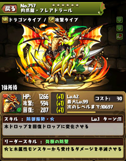 素材も持ってたのでせっかくなのでフレアドラールを究極進化させました。